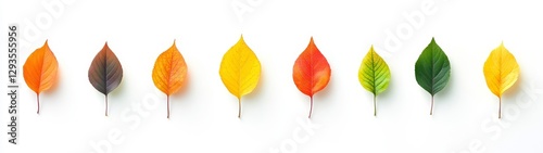 © อาริษา วันดี, Fototapeta premium Colorful Autumn Leaves in a Row on a White Background