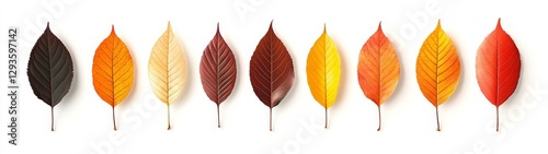 © อาริษา วันดี, Fototapeta premium Colorful Autumn Leaves in a Row on a White Background Displaying Variety