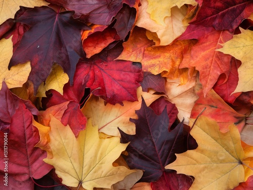 © ARSHDEEP, Fototapeta premium Colorful autumn leaves in vibrant shades of red, yellow, and orange, creating a warm, seasonal backdrop.