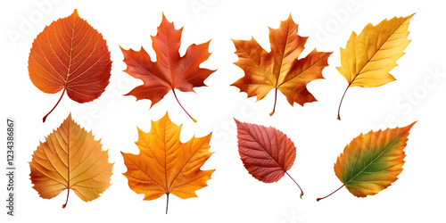 © Jieee Mooo, Fototapeta premium Colorful Autumn Leaves on Transparent Background