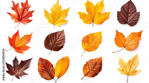 © Mitchel, Fototapeta premium Colorful Autumn Leaves Set on White Background