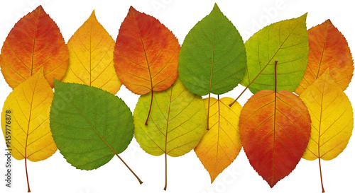 © StoxGo, Obraz premium colorful autumn maple leaves frame rainbow colored autumn leaves isolated transparent PNG