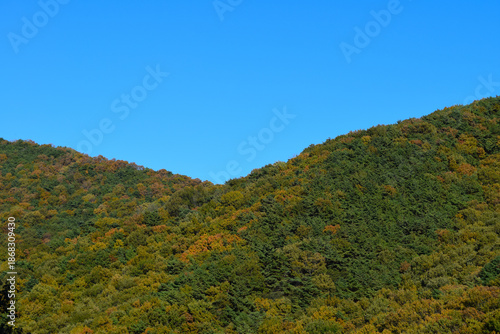 © 연수 류, Fototapeta premium Colorful autumn mountain ridge under clear blue sky