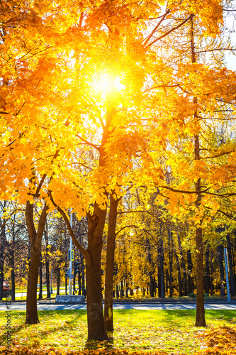 © sborisov, Fototapeta premium Colorful autumn park at sunny day