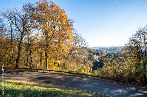 Obraz premium Colorful autumn Park with trees in Wiesbaden, Germany