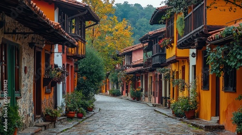 © tito, Fototapeta premium Colorful Autumn Street in a Mountain Village