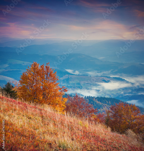 Fototapeta premium Colorful autumn sunrise in the mountains.