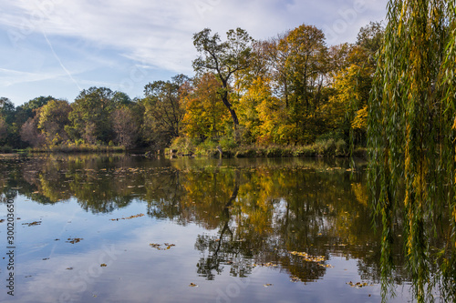 © tmag, Fototapeta premium colorful autumn tree leaves in the park