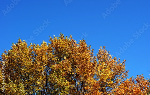 © Goshashka, Fototapeta premium Colorful autumn trees on a background of blue sky