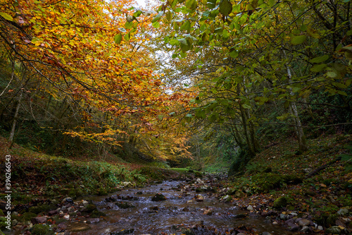 Fototapeta premium Colorful autumnal landscape of a river in the forest