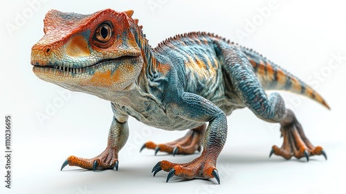 © Aziz, Obraz premium Colorful baby dinosaur, 3D render, isolated on white background.
