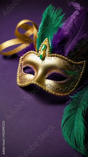 © Irma, Naklejka premium colorful background of carnival mask, feathers and beads