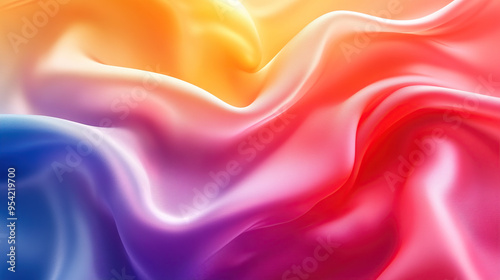 © 沈军 贡, Obraz premium Colorful background with rainbow-colored waves and a soft gradient
