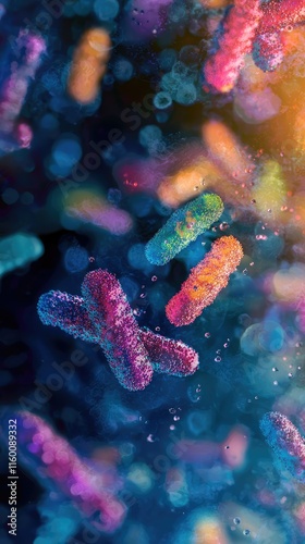 Fototapeta premium Colorful Bacteria Microscopy in Abstract Biology Art Style