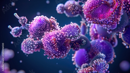 © khamz, Fototapeta premium Colorful Bacterial Cells Microorganisms in Purple Pink Blue Tones