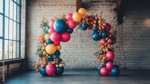 Obraz premium Colorful Balloon Arch with Flowers for Festive Event Celebration