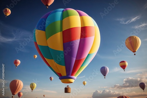 Obraz premium Colorful Balloon Soaring in the Atmosphere - 3D Cartoonish Artwork