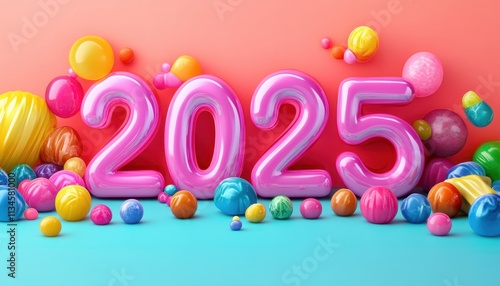 Fototapeta premium Colorful Balloons Celebrate the Arrival of Two Thousand Twenty Five