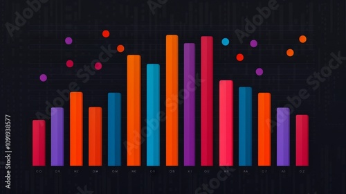 Obraz premium Colorful bar chart with scattered data points.