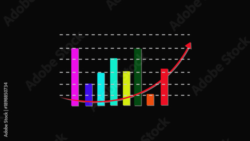 © BIJLI, Fototapeta premium Colorful Bar Chart with Upward Trending Red Arrow on Black Background graph data.