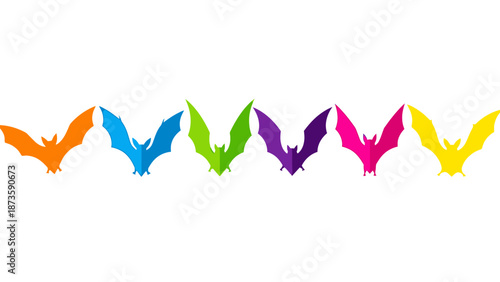 © ellisa_studio, Obraz premium Colorful Bat Silhouettes Flying in a Row - Rainbow Gradient Design