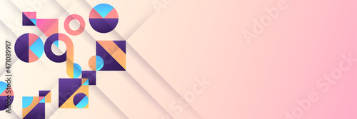 Obraz premium Colorful bauhaus geometric Memphis abstract wide banner background. Vector abstract graphic design banner pattern background template.