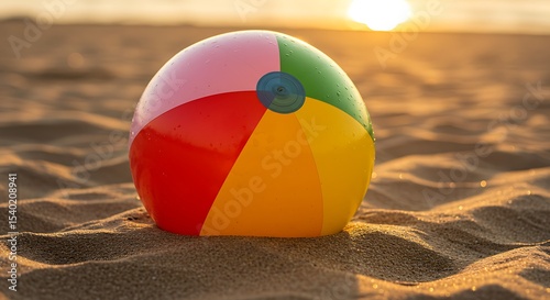 Obraz premium Colorful Beach Ball on Golden Sand at Sunset