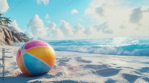 © Muhammad, Obraz premium Colorful Beach Ball on White – 8K Realistic Lighting Highly Detailed