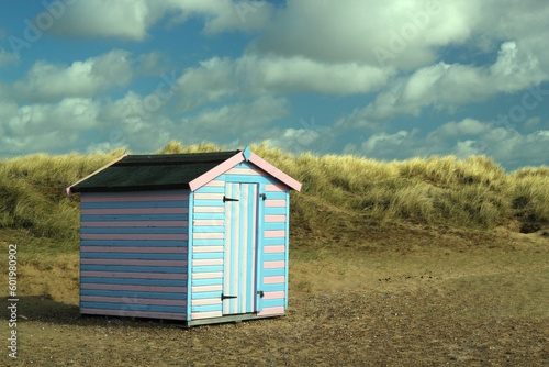 © paul, Naklejka premium Colorful beach hut in the sand dunes by the coast