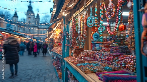 © Menggo, Fototapeta premium Colorful beaded jewelry displayed at a market stall.