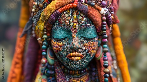 Fototapeta premium Colorful beaded mosaic sculpture of a woman's face