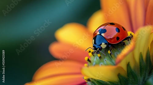 Fototapeta premium Colorful Beatle on Vibrant Flower - High Resolution Nature Image for Stock...
