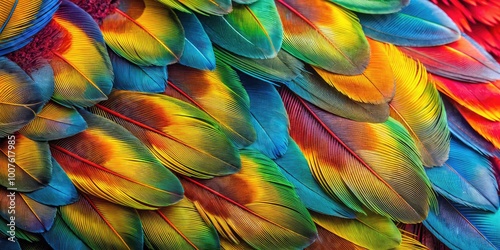 Obraz premium Colorful bird feathers showcasing intricate patterns and textures in a...