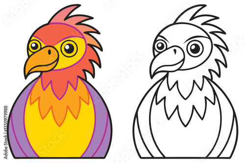 © Design_ mn, Fototapeta premium Colorful Bird Illustration with Line Art Version for Coloring Pages Cute Cartoon Animal Design for Kids Activities