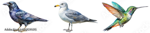 Fototapeta premium Colorful bird illustrations, detailed watercolor style, vibrant feathers,...