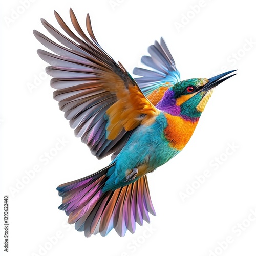 © jirapong, Fototapeta premium Colorful Bird in Flight Against White Background