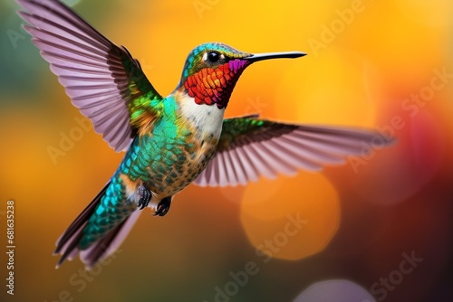 Fototapeta premium Colorful bird in flight colorful hummingbird in flight