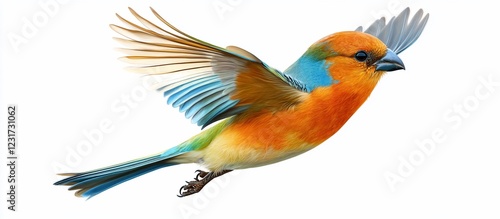 Obraz premium Colorful bird in flight, white background, vibrant plumage, nature imagery