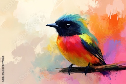Fototapeta premium Colorful bird painting perched on a branch with abstract background