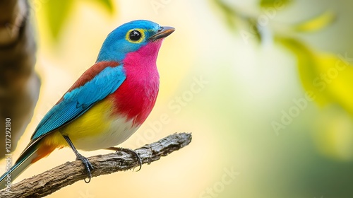 © saychandy, Obraz premium Colorful bird perched on a branch against a blurred background in a natural setting. Generative AI
