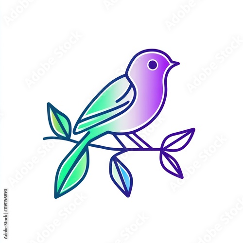 © lestari, Obraz premium Colorful bird perched on branch, spring design, white background, social media