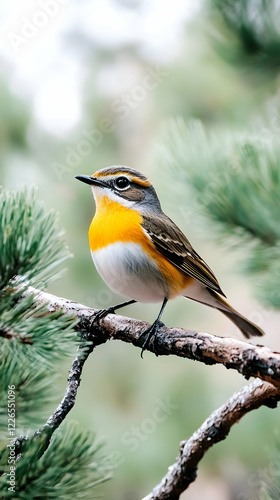 Fototapeta premium Colorful bird perched on pine branch, forest background, nature photography,...