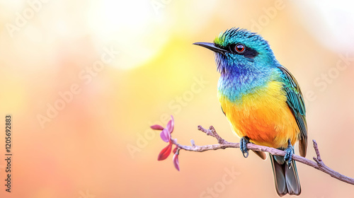 © Nhoeb, Fototapeta premium Colorful Bird Sitting on Branch with Blurred Background Effects