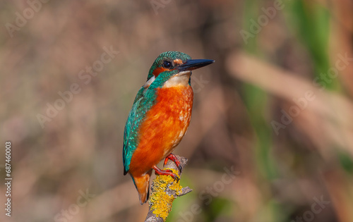 © kenan, Fototapeta premium colorful bird spying on its prey on dry branch,Common Kingfisher, Alcedo atthis