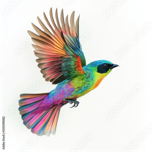 Obraz premium Colorful Bird Taking Flight Against a White Backgrounds and Its...