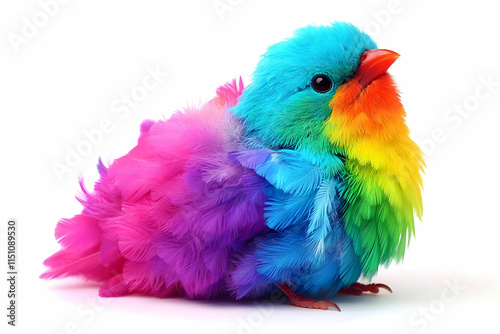 © Arthur Constantine, Obraz premium Colorful Bird with Bright Feathers Displaying a Spectrum of Vibrant and Playful Colors Against a White Background