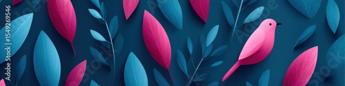 © Iuliia, Obraz premium Colorful birds and vibrant patterns create a lively design with open space for text