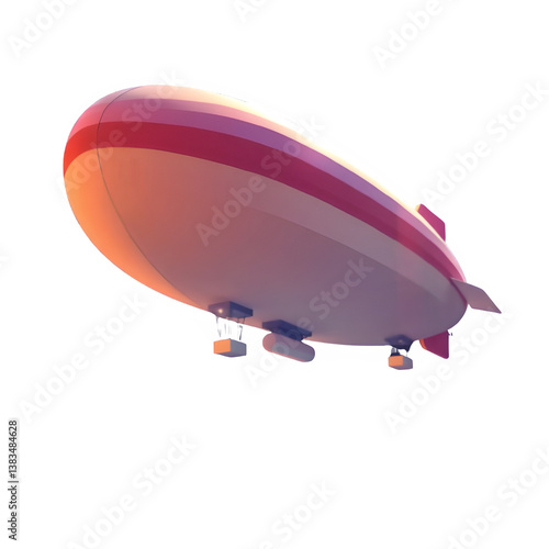 © Hairi, Obraz premium Colorful Blimp with Red and White Stripes Flying Gracefully at Sunset