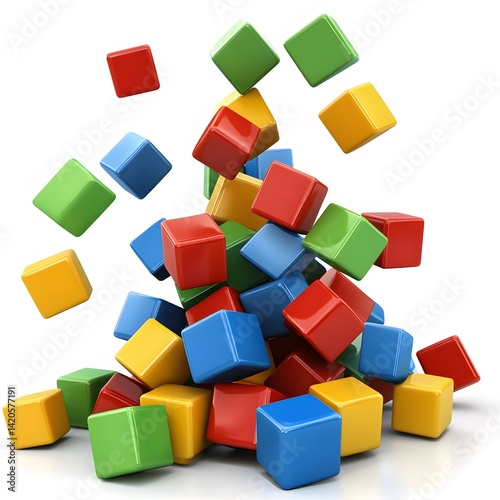 © sahina, Obraz premium Colorful Blocks Falling Pile Toy Cubes 3D Render