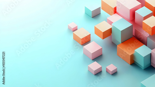 © NY-KSJ, Obraz premium Colorful Blocks on Light Blue Background
